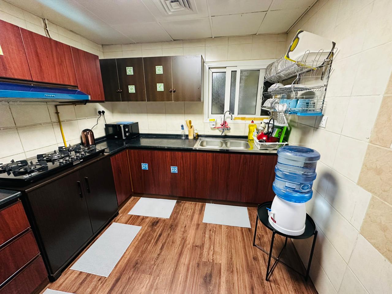 The apartment is fully equipped and has 12 privacy cabins with 2 shared washrooms for 12 guests. AED 1200/- includes all costs and service charges, with no hidden fees, and includes the following amenities: